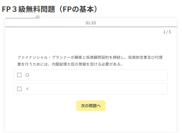 FPのライト|制限時間タイマー付きのランダム出題で、繰り返し学習できるFP3級無料学習コンテンツ